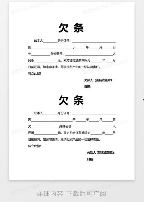 说起欠条照片,不得不提的就是它的前身——欠条。欠条,顾名思义,就是债务人向债权人出具的,承诺在一定期限内偿还债务的书面凭证。而随着科技的发展,人们开始将欠条拍成照片,保存起来,这就形成了欠条照片。